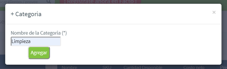 Haremos click en ese botón para agregar la subcategoría de Limpieza, le asignamos el nombre y hacemos click en Agregar:
