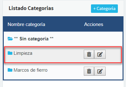 De esta forma será agregada la subcategoría para la categoría Limpieza: